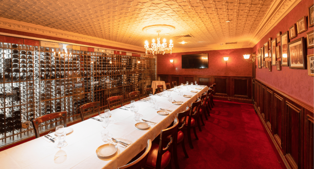 This private area nestled behind the wine cellar is perfect for small corporate events, meetings or private dinners.